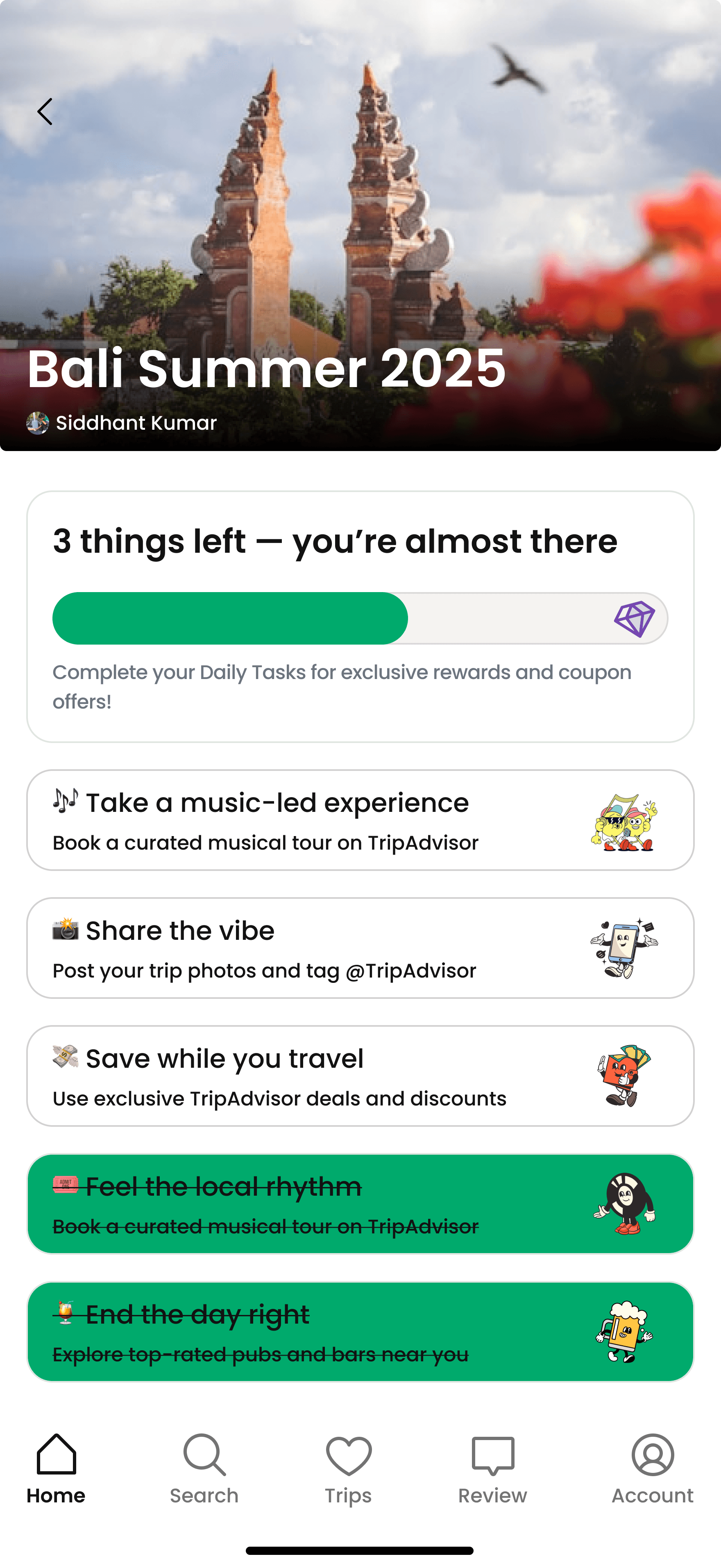 Unlockable achievements reward users for exploring new destinations, writing reviews, and discovering hidden gems, encouraging repeat engagement with TripAdvisor.