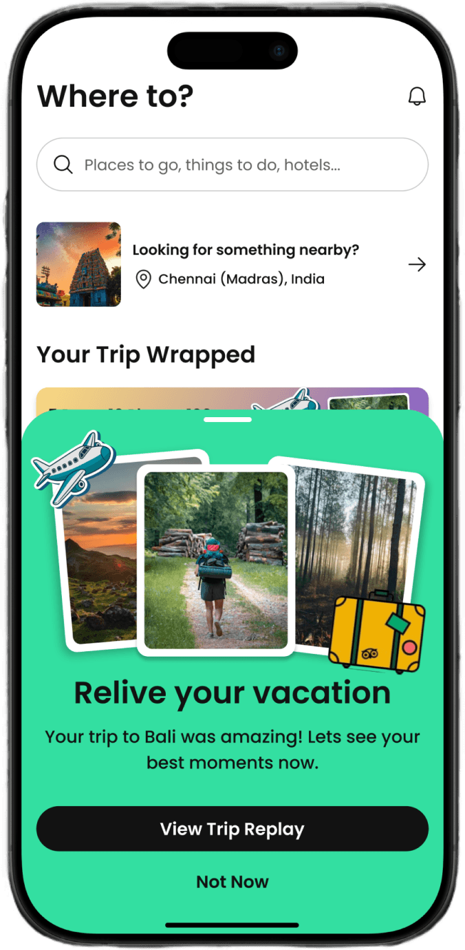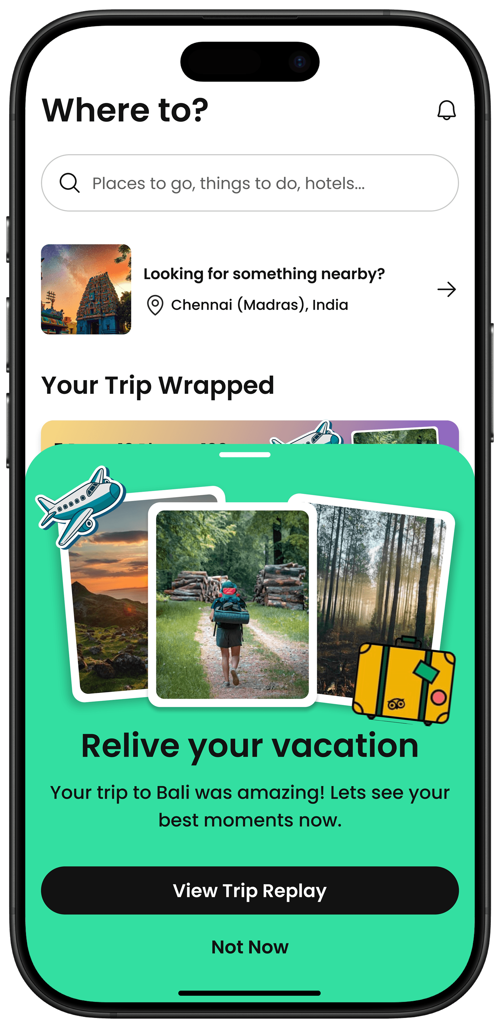 A toast popup prompts users to explore their Trip Replay right after their trip, creating an immediate connection with their travel experience.